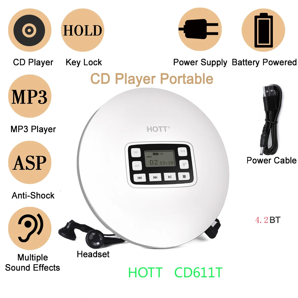 Sale HOTT CD611T Portable Bluetooth CD Player with Rechargeable Battery LED display CD walkman to enjoy Promo Offer only pay US $55.33