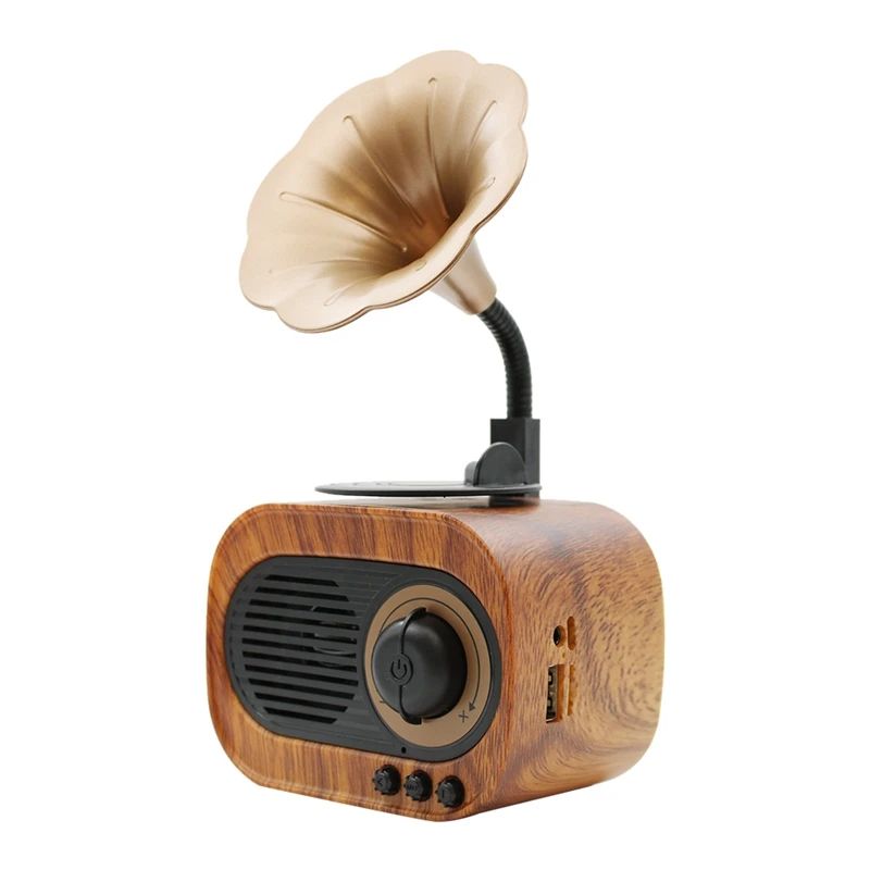 Sale Retro Trumpet Style Bluetooth Speaker Wireless Stereo Subwoofer Music Box Wooden Speakers With Mic Today Deal just for US $13.59